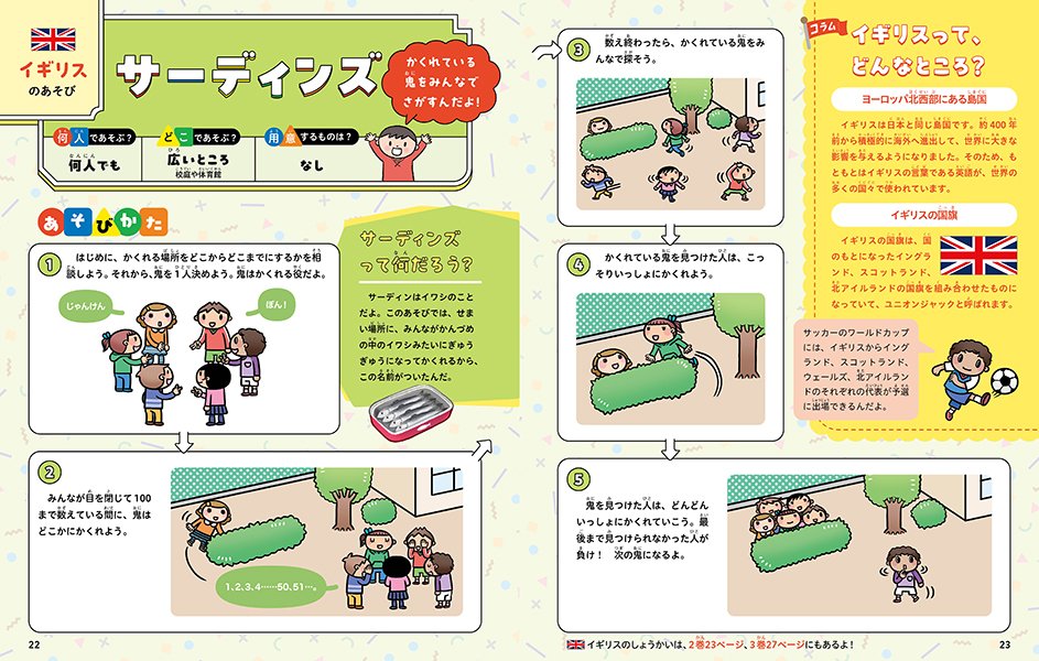 本書は、子どもたちがいろいろな国の遊びを通して積極的にコミュニケーションをとり、異なる文化に関心をもつためのきっかけになることを目指して企画されました。いろいろな国の遊びをイラストとともにわかりやすく説明するとともに、遊びや国についての情報コラムも掲載しています。